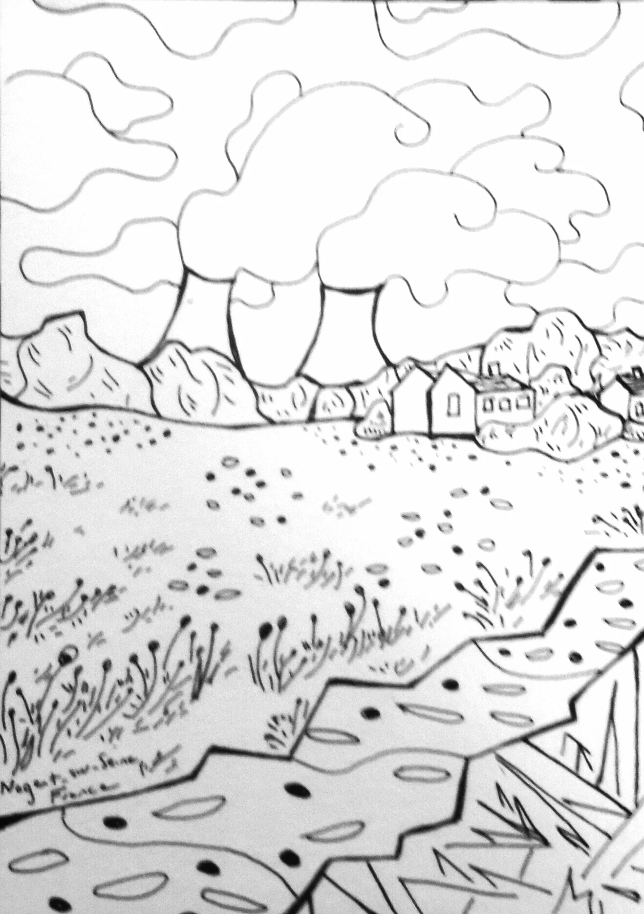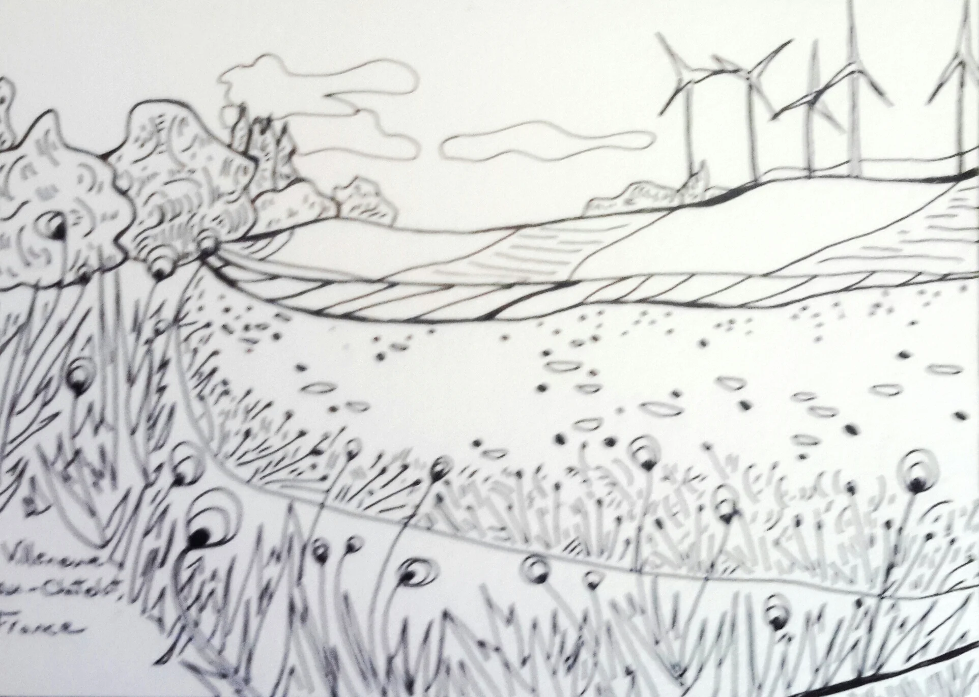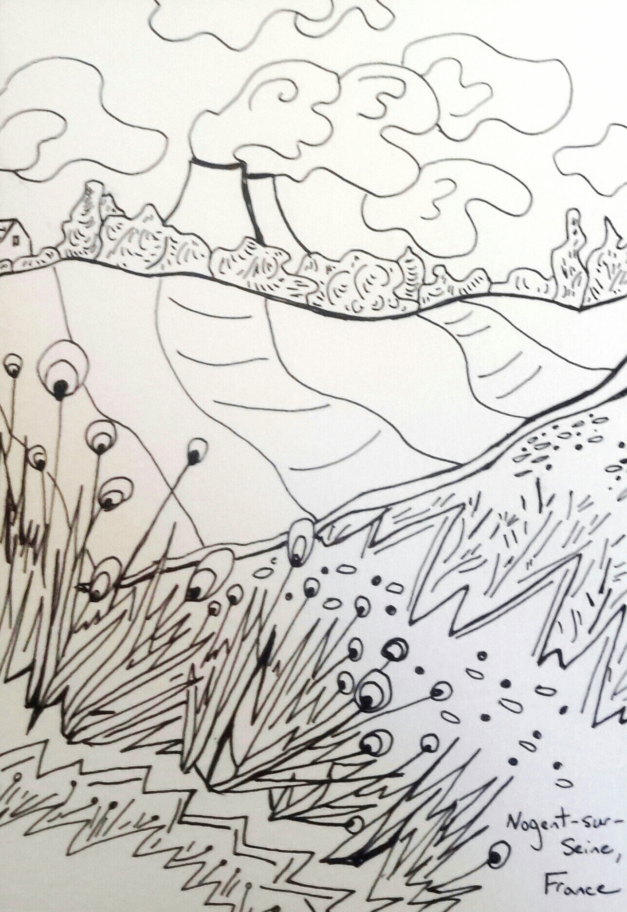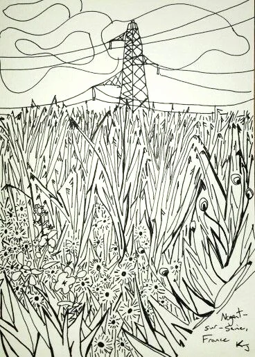 My usual routine was to spend much of my days outside. I got to know the best paths around town and through the fields, I rode my bike to nearby towns such at Villenauxe-la-Grande, Barbuise, Villeneuve and to the nearest major town with a train station, post office and grocery store Nogent-sur-Seine (I was also pretty obsessed with it's nuclear power plant.) I sketched everywhere I went.