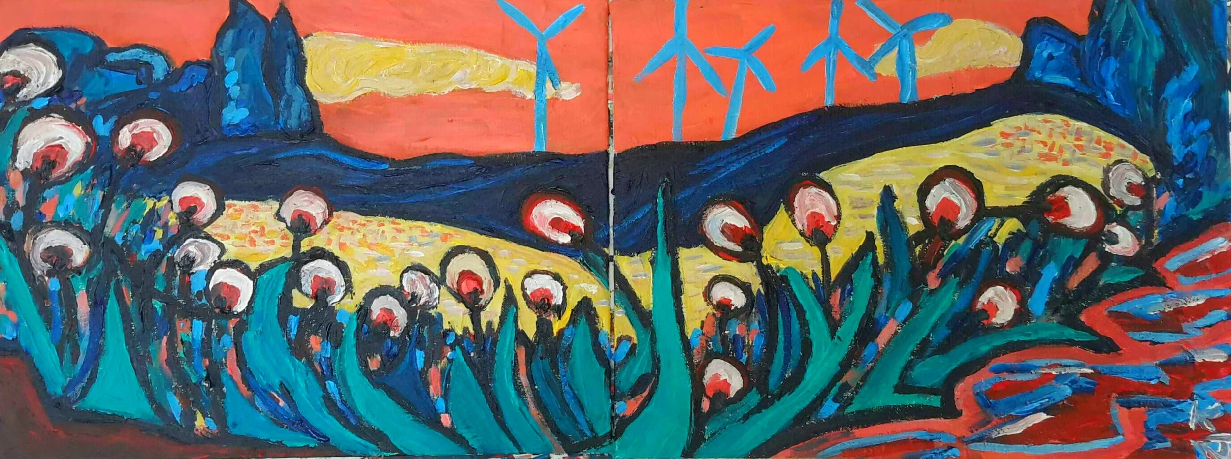 Then in the evenings, after our wonderful communal dinners, I would translate what I had seen and sketched into paintings.